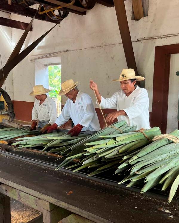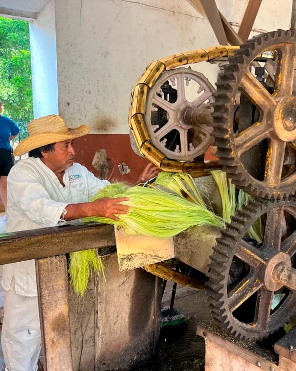 Afterwards you will be shown step by step the process of the henequen leaf cultivation, the process of industrialization of the leaves of the plant and know the old restored machinery to see the process of making the ropes or bales of henequen, which was the great industry of Yucatan and its different types of ropes and thicknesses.